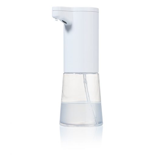 Um dispensador de álcool em gel sem contacto para utilização em entradas, salas de café, átrios, etc.